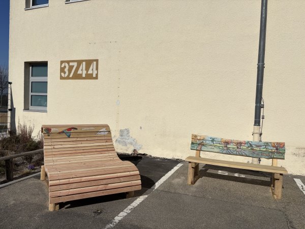 Nach vier Tagen Arbeit war es am 26.02.2026 um 12.30 Uhr soweit: Die neuen Sitzgelegenheiten im Pausenhof konnten bei schönstem Frühlingswetter eingeweiht werden.